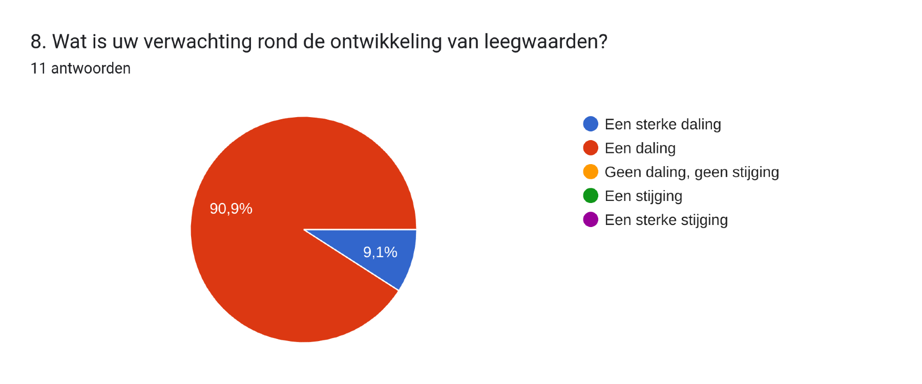 De ondervraagde beleggers zijn eensgezind in hun oordeel over de ontwikkeling van de leegwaarden in 2023: die gaan omlaag.