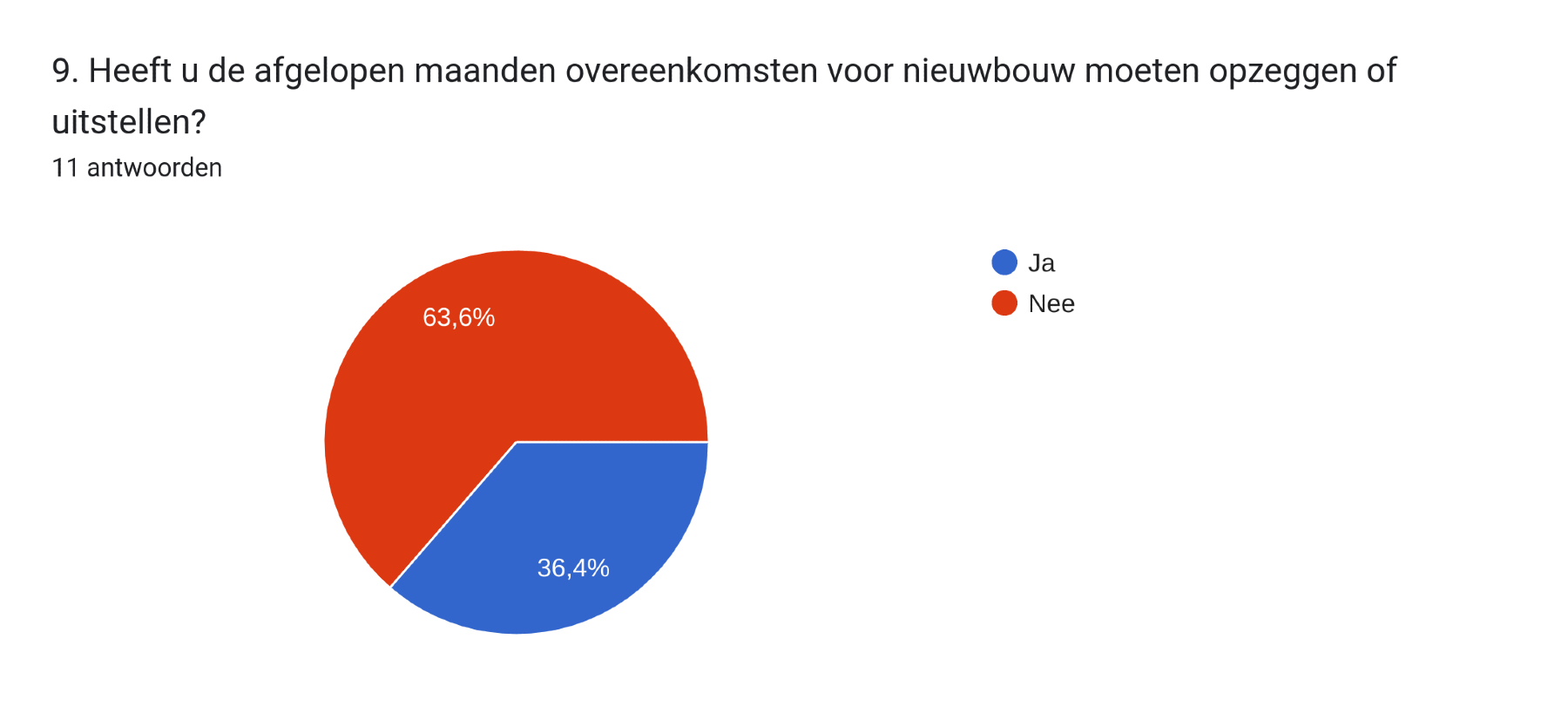 Een kleine veertig procent van de deelnemers geeft aan dat zij in de afgelopen maanden overeenkomsten voor nieuwbouw hebben opgezegd of uitgesteld.